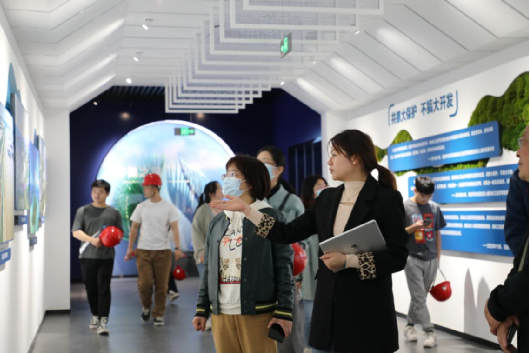 公司宣講員向參觀者介紹六安蘇大堰生態(tài)文明館科普知識(shí)
