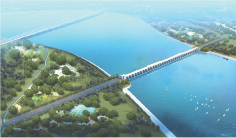 37座閘墩立于水面之上,每個(gè)閘墩長(zhǎng)35米、高10.5米,遠(yuǎn)遠(yuǎn)望去,一座“攔水壩”已然成型。