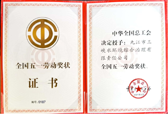 ? ? ? ?本網訊(陳潔明) 4月27日,2021年慶祝“五一”國際勞動節暨“建功‘十四五’、奮進新征程”主題勞動和技能競賽動員大會在北京舉行。大會表彰了2891個集體和個人,其中,長江環保集團九江市三峽水環境綜合治理有限責任公司(簡稱九江三峽水環境公司)喜獲“全國五一勞動獎狀”。